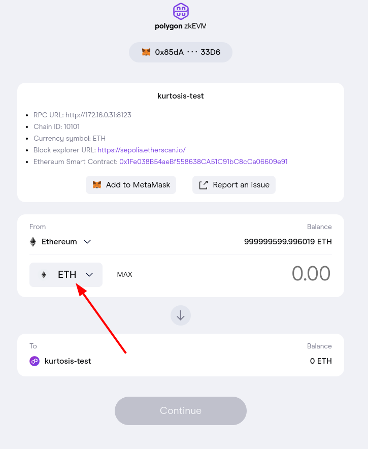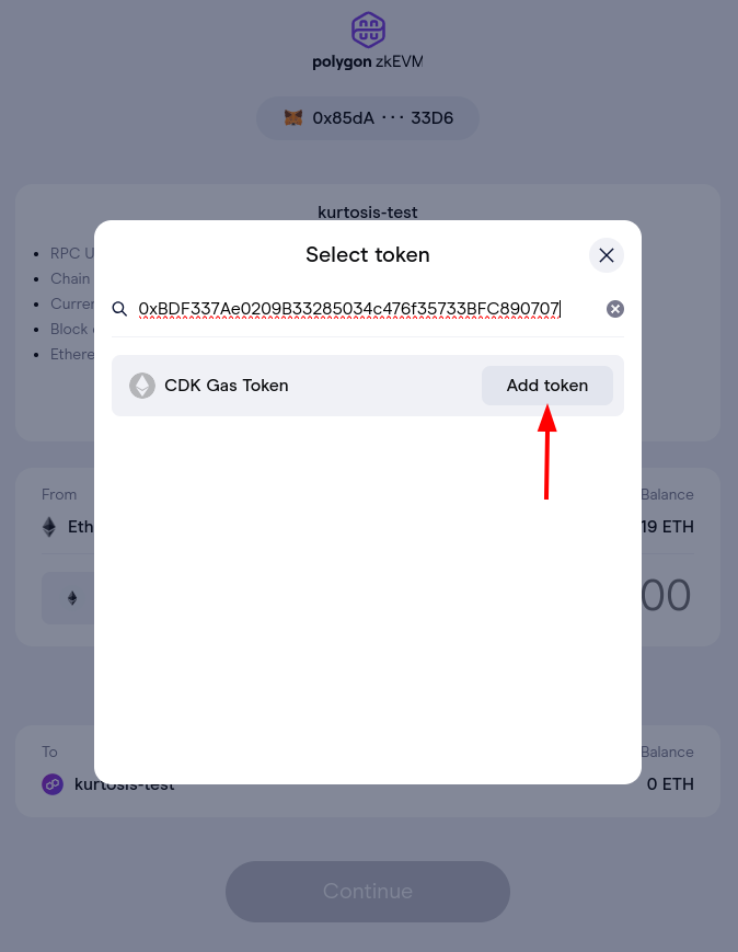 kurtosis port print cdk-v1 zkevm-bridge-proxy-001 web-uiAdd L1 and L2 RPCs to your wallet