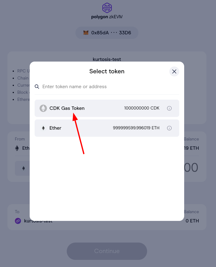 gasTokenAddressfrom the generated files:kurtosis service exec cdk-v1 contracts-001 "cat /opt/zkevm/create_rollup_parameters.json" -