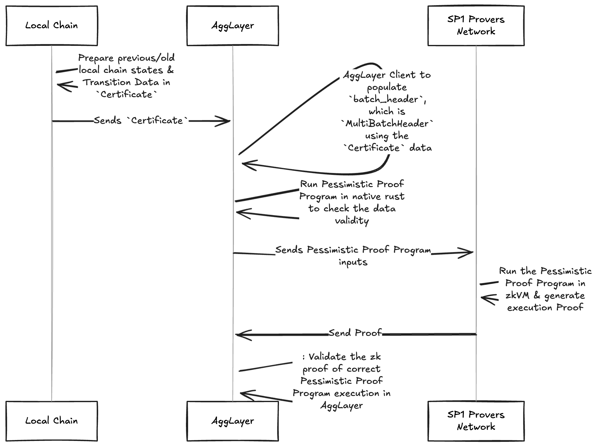 The pessimistic proof mechanism implements a safety boundary between chains - it ensures that even if a chain's prover becomes compromised or unsound, the damage is strictly limited to the funds currently deposited on that specific chain.
