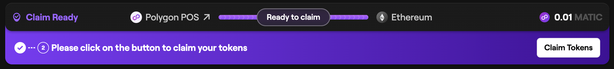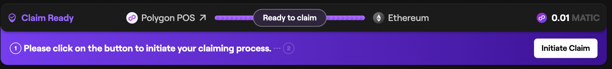 Let's say you bridged MATIC from PoS to Ethereum. Once your tokens are ready to claim, you'll be able to select the Initiate Claim option under the transaction record.