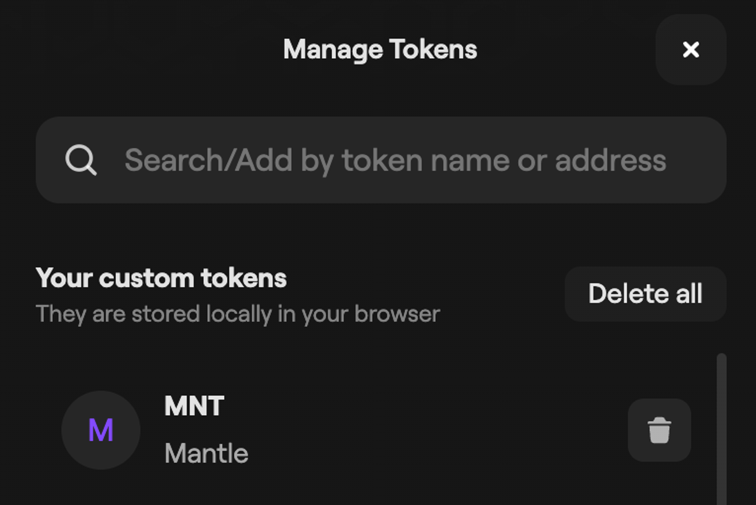 First, try looking up the token directly by clicking on the Manage Tokens located in the bottom-right corner of the dashboard, and then entering the token name in the input field.