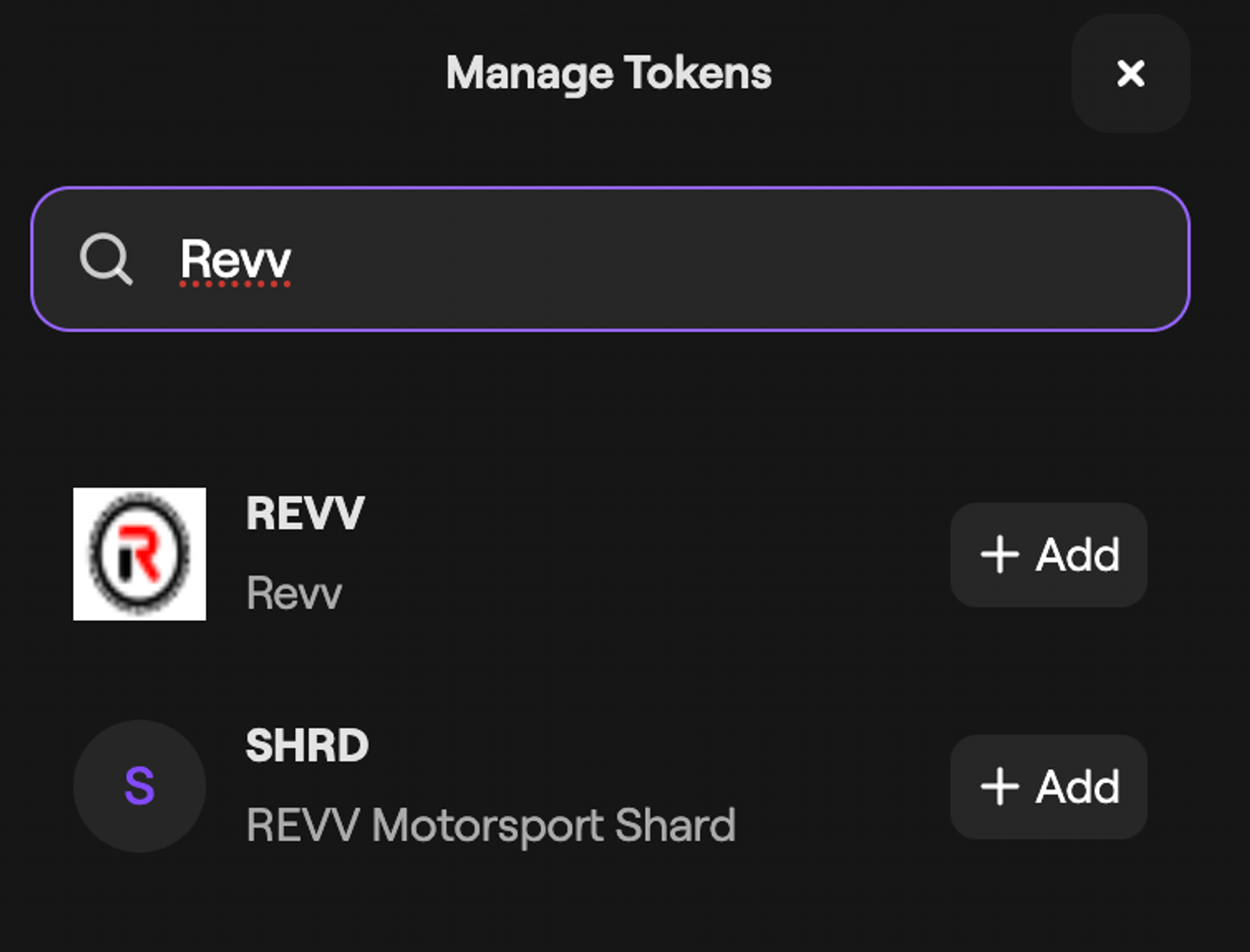 If the token you're looking for shows up, select Add to add it to the portal.