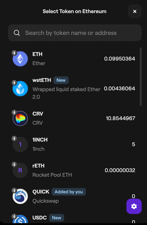 Select the token from the drop-down list that you're looking to bridge from the source chain to the destination chain.