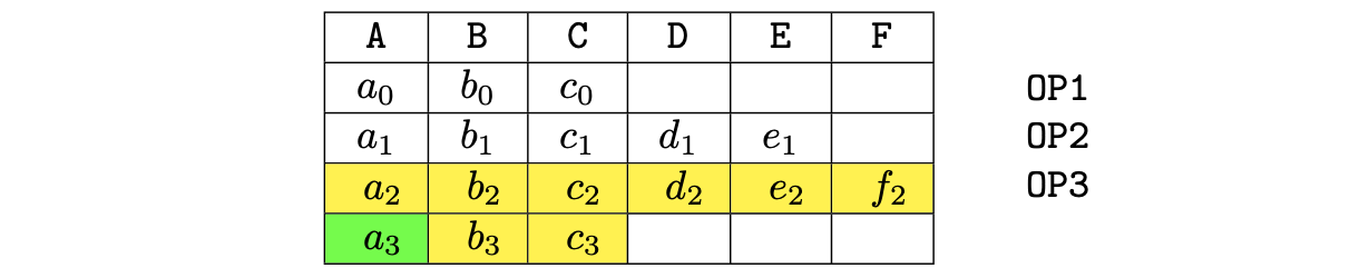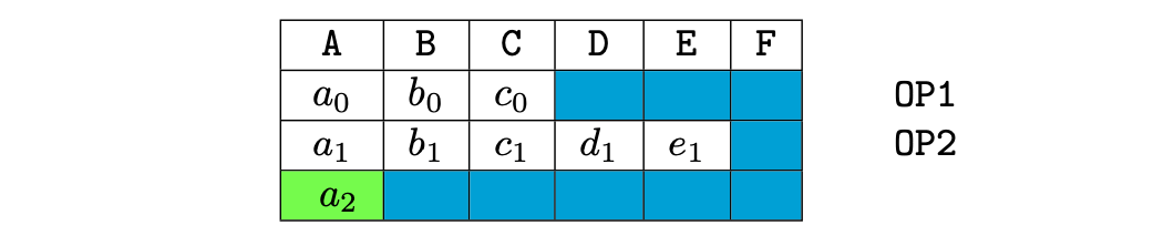 That is, placing the last two operands of in the last row of the execution matrix. And thus reduce the number of columns from 6 to 3.