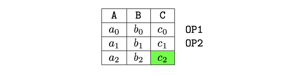 Each is typically the output of some operation , applied on some entries from columns , and . That is: