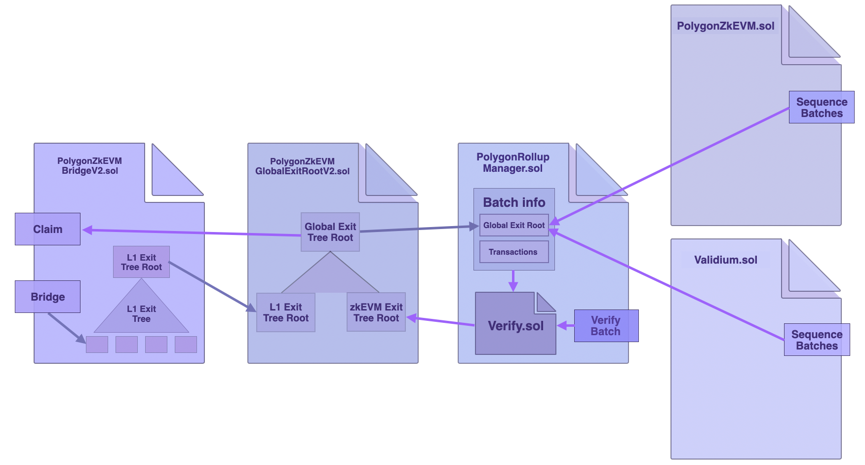 Although the logic for bridging or claiming assets from one network to another remains the same, individual L2 consensus contracts no longer handle verification of their own network's sequenced batches.