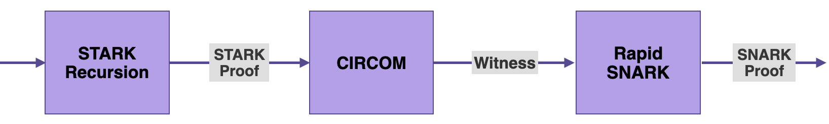 CIRCOM takes the output of the STARK Recursion as input, so as to create its corresponding witness.