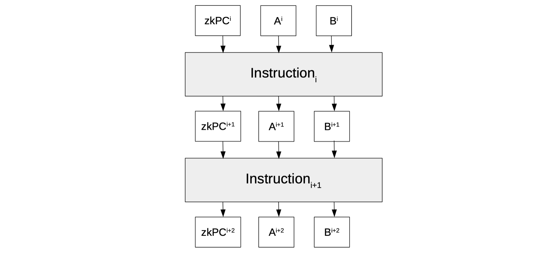 Also, since there are no jumps in the instruction, JMP=0\mathtt{JMP = 0} and JMPZ=0\mathtt{JMPZ = 0}, and therefore zkPC=zkPC+1\mathtt{zkPC' = zkPC + 1}.