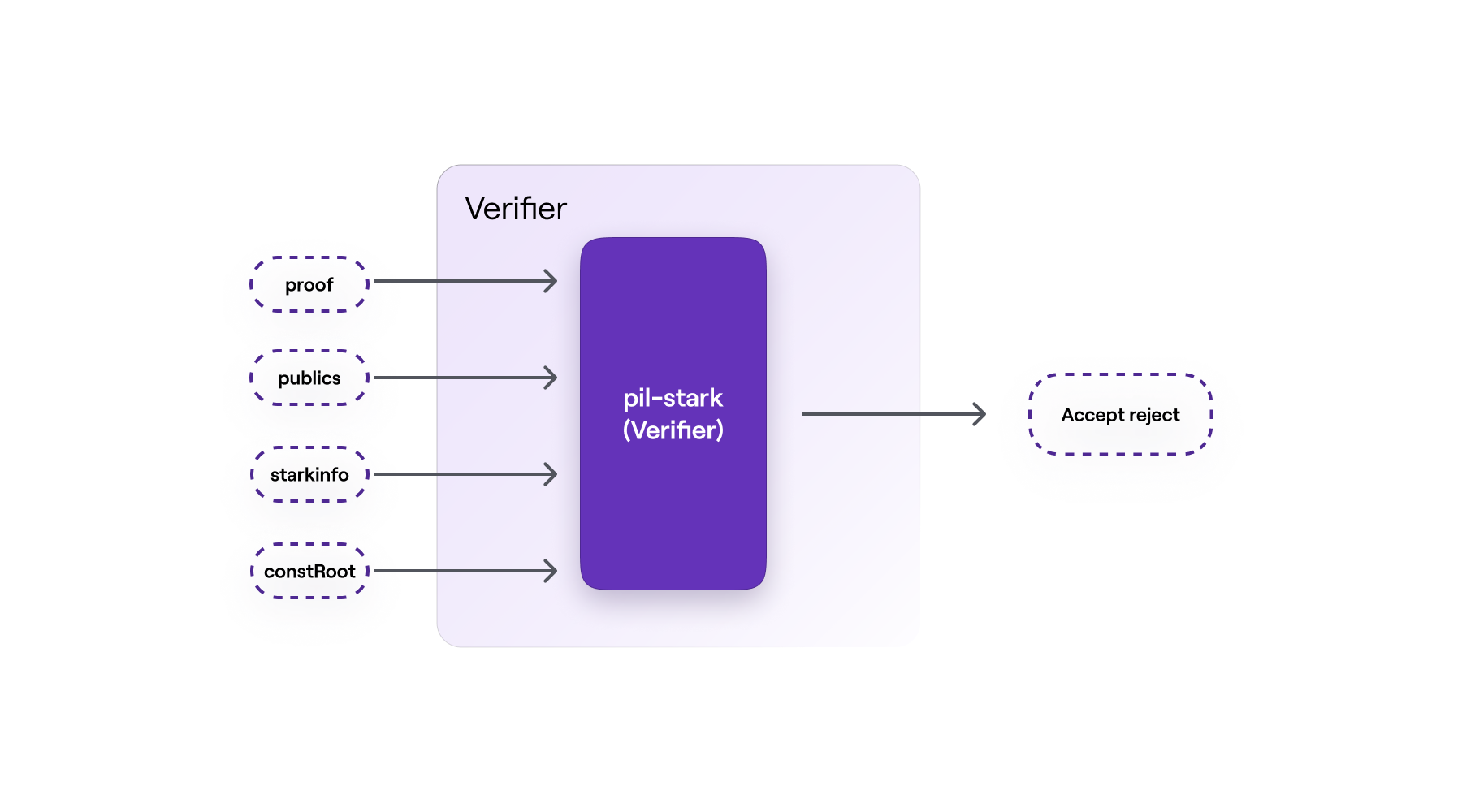 Hence there is a PIL-STARK component in the SM-prover which is the generator of a STARK proof, and another PIL-STARK component in the SM-verifier which is the actual verifier of the STARK proof.